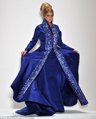 Wearing a stunning cobalt blue embellished gown and matching dress coat, the actress garnered cheers and loud ovation as she swept up the long catwalk, looking 20-years-younger than her actual age.